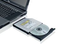 | Take a picture for your presentation, then put it into the notebook and store it immediately afterwards on DVD? Thanks to its modular bay the ESPRIMO Mobile D9510 can support a DVD-drive, second battery or a second hard disk drive. This gives you genuine flexibility when meeting the individual demands of your business. |